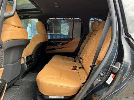 2022款雷克萨斯LX600座椅布局方面,新车的前排座椅倾斜角度可以调节至 48度。而后排座椅显示屏可以向下折叠以提供前方视野,其最大腿部空间为 1,100 毫米/43 英寸。同时,新车的后排座椅还采用 Ultra Luxury 独有的弧形头枕、座椅靠背和靠垫,可以地对头部、臀部和下半身进行包裹。