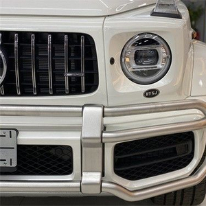 21款奔驰G (配置|询价)63正面上的进气格栅依旧是奔驰G家族式的风格,简单但不失霸气,这组大灯则是由银色的日间行车灯所包围,霸气的前包围也彰显出了这部车的硬派感!
