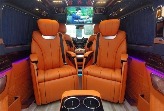 二排座椅可以旋转,这样就能很便捷的形成一个·商务谈判的局面。商务人士可在会议过后利用车厢的灯光设备等,顿时让氛围轻松起来,可商务可休闲。所有调节功能都可以在中央扶手上的调节屏上进行触屏操作,方便简单。相较于普通的联排沙发床更加的豪华。 左右两个分体式座椅,带有电动6向调节、通风、加热、按摩等功能,这可是在一般的商务车上难得一见的。
