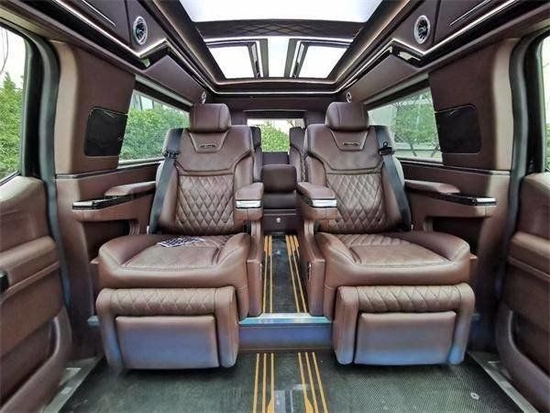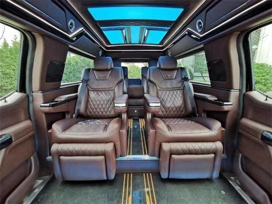 内饰也是很豪华,你能自己家庭使用,开他出去玩儿,你能把他当公司用车用作接待,毕竟这是一款非常挣面子的车。后面是航空座椅和沙发床,你想要的舒适功能他都能满足,能按摩,能睡觉,能看电视,能听音乐,还能抬头看看星星。顶灯三款不同的颜色随意切换,你想让他变换哪种氛围,他都可以。