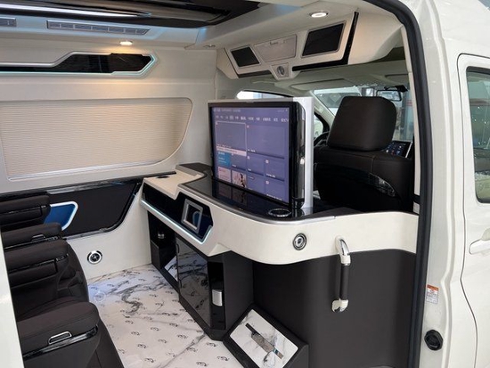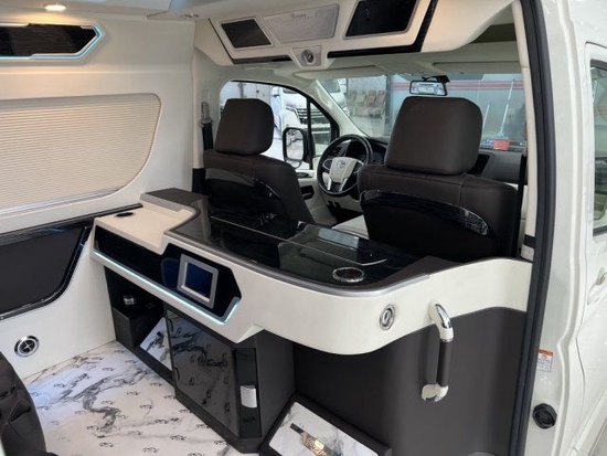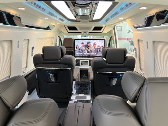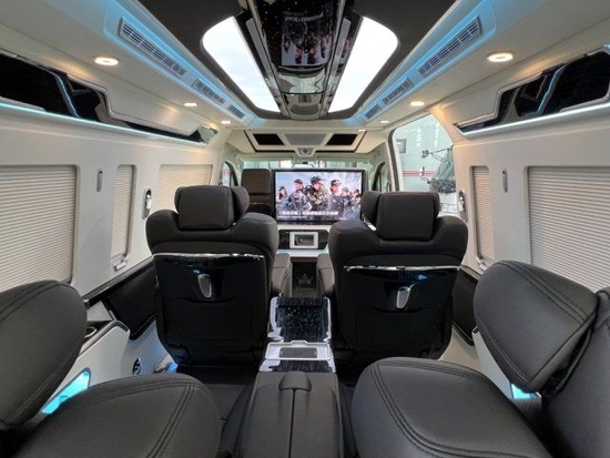 丰田海狮商务车改装可以选择的座椅有360度可旋转的航空首长席座椅,再配备高档的办公桌,方便我们在旅途中的会议以及商务活动的需要。丰田海狮改装同样也可以选择,原装进口的埃尔法豪华座椅,并且再配备电动加热通风以及电动脚托的装置,华通丰业丰田海狮改装商车在内饰座椅上的选择上充分体现了对于乘车人员舒适度的考虑。