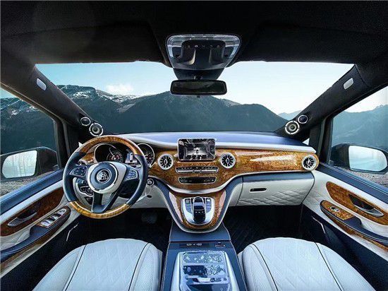 奔驰V260L改装前后舱带有隔断,升降电视。奔驰V260L在内部装潢上也进行升级,车体提供真皮、Alcantara以及木材和碳纤维多种材质可供选择。而MPV车型看中的合金踏板、合金门把手以及内装台板等这款车都有所配备。