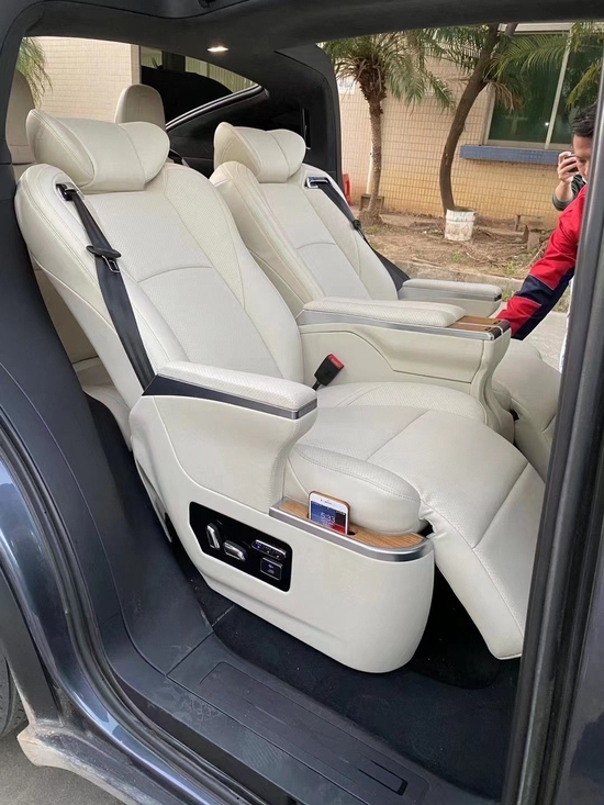 娱乐:娱乐系统改装,指氛围灯光、中控、音响等。 办公:办公改装一般是指,后排商务小桌板、杯架、无线网络等。 汽车内饰的改装上至房车MPV商务车,下至家用商务SUV、轿车,都是能做出不意想不到的效果。 真皮座椅:在繁类众多的内饰改装方面,在内饰改装触及最多最广最实惠的就属真皮改装。因为真皮改装的效果是改装里面最能直接感受到。 第一、体感柔软,舒适耐用;第二、表面光滑,容易清洁;第三、视觉光鲜、饱满精致、豪华美观;因而真皮内饰被认定为豪华的象征,深受广大用户的青睐,是大多数车主的内饰首选