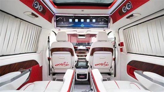 16。前后舱液晶电视隔离(电视有升降系统) 17。前后舱无线对讲电话 18。双隐藏式秘书座椅 19。隐藏式储物盒 20。隐藏式酒柜 21。隐藏式保险柜 22。双迈巴赫S级 (配置|询价)总裁航空座椅(按摩加热痛风记忆等功能) 23。双无线充电器 24。贵宾舱碳纤维装饰条 25。前置可开启天窗 26。后置迈巴赫天使之翼灯箱 27。进口羚羊毛地板 28。双总裁座椅隐藏桌板 29。热感触摸控制屏 30.220逆变电源 31。贵宾舱氛围灯 32。贵宾舱私密窗帘 33。定制版万国钟表 34。双开式后尾门 35。四轮空气悬挂 底盘升降等豪华配置。
