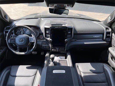 22款道奇公羊霸王龙TRX在内饰部分进一步强化了其高性能版本的形象,中控台和座椅随处可见的TRX标识便是最好的例证。同时,作为道奇Ram家族的旗舰车型,新车还配备了12英寸竖置中控屏幕,除了支持蓝牙、导航和车载Wi-Fi等常见功能,还支持Apple CarPlay和Android Auto手机映射。