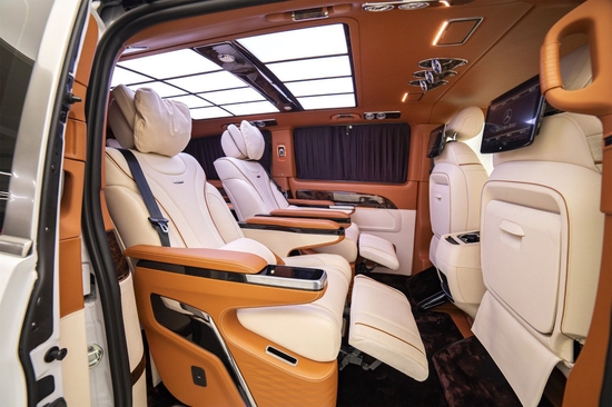 空间格局方面,奔驰V260L应该是最具优势的了,3400mm的轴距,中排后排的空间都非常宽裕,娱乐方面,29.5寸液晶电视,带网络电视、环绕音响,配上宽大厚实的航空座椅,体会到堪比家庭影院的享受。