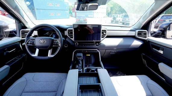 2022款丰田坦途采用悬浮式中控大屏设计,中控屏从低配版8英寸到顶配版的14英寸,并且还提供有12.3英寸的全液晶仪表盘可供选择,支持CarPlay和 Android Auto系统。值得一提的是,新车全系标配Toyota Safety Sense 2.5智行安全系统,具备拖挂模式、蠕行模式、越野模式等多种驾驶模式。