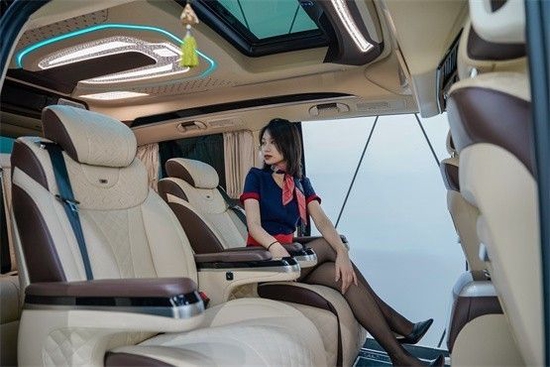 屏幕上方是一个新颖独特的经典航空时钟,下面是一个空气净化器配置,为封闭的内部空间提供新鲜空气,完美地确保内部空气循环。三排座椅是一个非常人性化的座椅,因为后舱空间完全足够,所以可以向后旋转,,前排使用冲孔皮革覆盖豪华皮革座椅,后排舒适;中间单人豪华座椅、触摸屏电控、头枕高度、角腿支撑升降、前后滑动、通风加热、气动按摩、旋转等功能;后座支持平床使用,中间扶手触摸调整座椅前后移动位置,靠背仰卧。