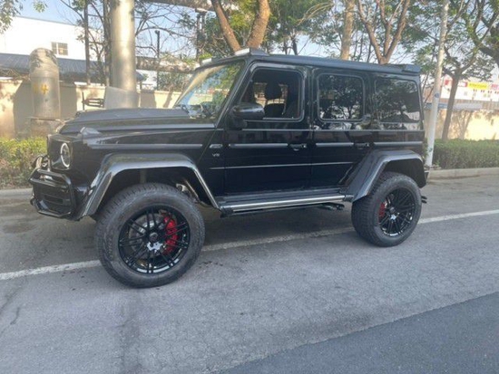 配置;天窗、22轮、红卡钳、门式硬桥、碳纤维宽体轮眉套件、碳纤维顶灯、真皮座椅舒适包、前排座椅通风加热二排座椅加热、柏林之声 三把差速锁、底盘舒适度调节、脚踏、前电眼、倒影、导航、多功能方向盘(蓝牙、定速巡航、换挡拨片)、双区空调、AMG运动包、暗夜套件。