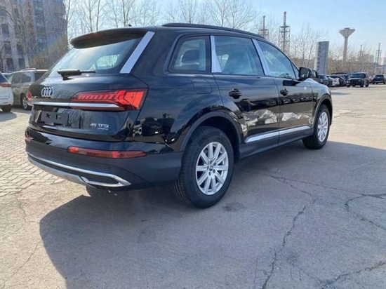 2022款奥迪Q7 (配置|询价)在外观方面和现款保持一致,奥迪家族式前脸,六边形大尺寸中网,配备了矩阵式修长的LED大灯组,包围双侧为蜂窝状格栅,配上下方的银色装饰,车头营造出很强的时尚运动感。车身流线感十足,车身搭配贯穿式腰线让车身顺畅,车门下方装配了银色装饰条,车身带有车裙包裹。 尾部车顶小尾翼看起来运动感十足,尾门上的金属镀铬条贯穿到尾灯中,尾部整体还是有着很强的层次感,下包围处带有贯穿式假式蜂窝格栅点缀,修长的倒车灯光组让车身看起来更宽,双边单出大尾喉排气口,让Q7看起来更加运动感十足。