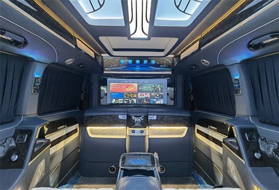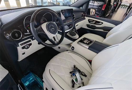 2022款奔驰V260L商务改装版配置表:双侧电动门,全车大包围,铝合金行李架,LED 流水尾灯,倒车影像,多功能方向盘,原厂中排后座小桌板,前排手动升级电动座椅,12.1寸超大屏手机互联智能音响导航系统,全车高级桃木内饰件,后座11.6寸1080P高清智能娱乐系统,支持各种格式无损音乐播放。中排豪华航空座椅,后排多功能沙发床,吸顶电视,扶手冰箱,中控大屏,360无光夜视,全车内饰真皮软包造型,隔热隐私窗帘,意大利Alcantara翻毛顶,个性化行云流水顶灯 氛围灯。