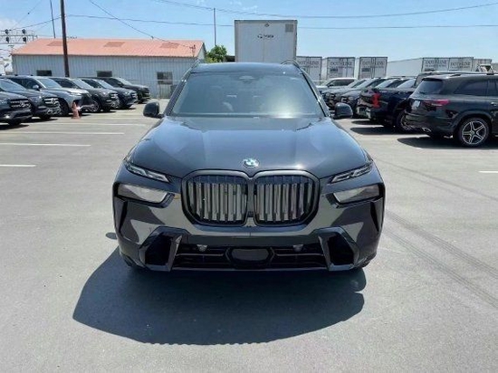 平行进口全新宝马X7 (配置|询价)双肾式大尺寸前进气格栅,大灯的外部造型上面是更加的扁平化,内部的天使眼的大灯设计在设计上面是更加的抽象化和科技感,下方的保险杠以及整体的氛围营造也是在向着沉稳的方向过度的。