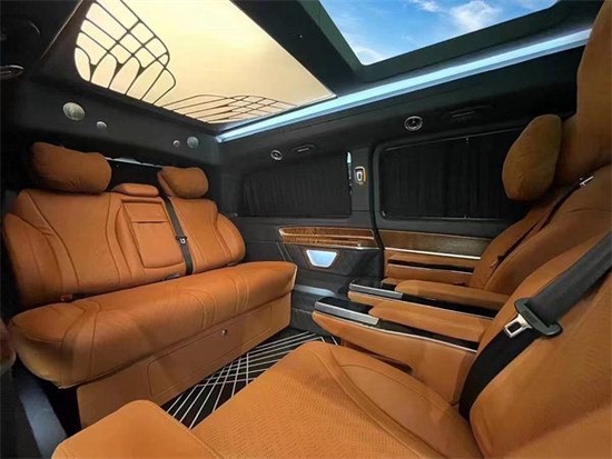七座布局,第二排座椅采用两个航空按摩座椅,带加热,按摩,通风,一键式电动调节记忆等功能。奔驰V260L改装红钻版座椅人体工程学设计,带有一键式展开及记忆功能,并配备加热、通风、气动按摩、一键式伸缩腿托功能,带来头等舱级舒适体验巧夺空间,私家客厅级后舱体验。