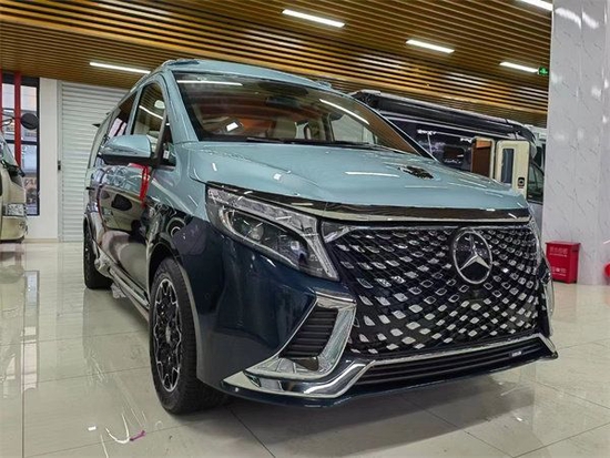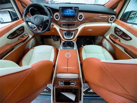 因为纵横四海是一款高端商务车,所以车内的设计亮点主要集中在后排,至于前排基本沿袭了奔驰的一套经典设计语言。中控台依旧是大众熟悉的设计风格和布局方式,主要针对用料进行提升。小巧中控屏搭载当下主流科技配置,应对日常出行没什么问题,双炮筒式仪表盘以及炮筒状空调出风口还是熟悉的奔驰味道。
