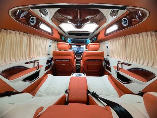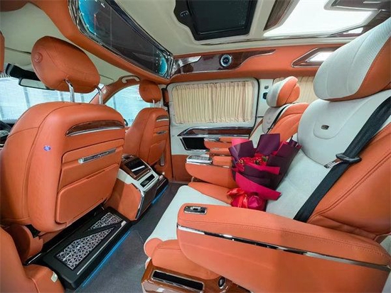 第二排配备了两个非常豪华的航空座椅,乘坐体验堪比商务舱,宽大座椅的填充物非常饱满敦厚。搭载了独立头枕、腿托、小桌板等一系列便捷配置,拥有的舒适性功能是相当丰富,座椅支持一键展开以及一键复位,灵活切换商务接待、日常休息等多种用车场景。基本上所有的配置都具有电动调节功能,只有当你坐进车内,才能感受到什么才是真正的商务豪华。