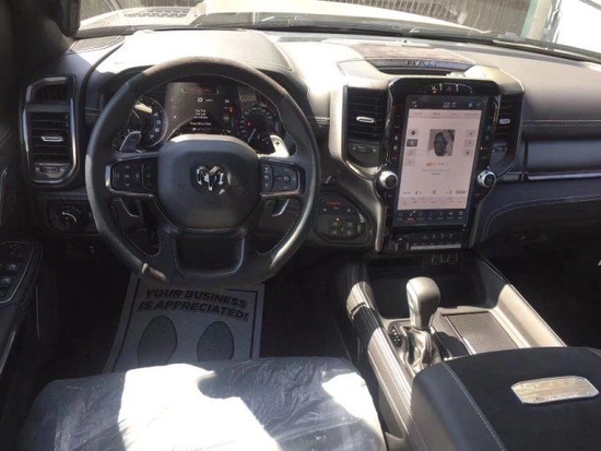 2022款道奇公羊霸王龙规整的中控台设计看上去比较死板,但丰富的配置会让你不由得为其称赞,中控台的设计简洁硬派,符合公羊的气质,仪表盘底边有花纹,则更加凸显了这款车的文雅性,软性材质的仪表台设计,摸上去手感非常舒服,并无些许生硬之处。
