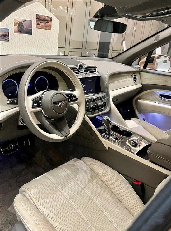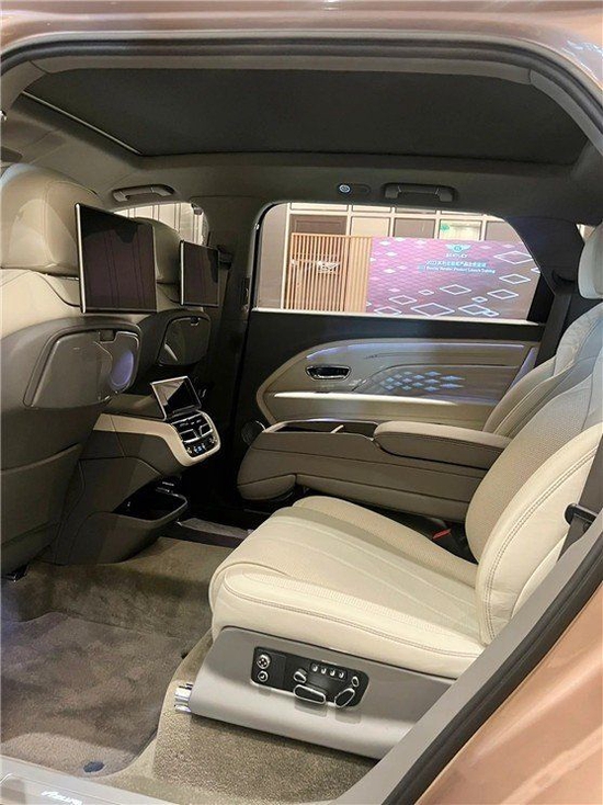 23款宾利添越加长座椅功能方面也用料十足,真皮包裹的座椅乘坐感受一流,而且坐姿可以调整到最舒适的角度,无论是包裹性还是舒适性都符合自身价值与定位。