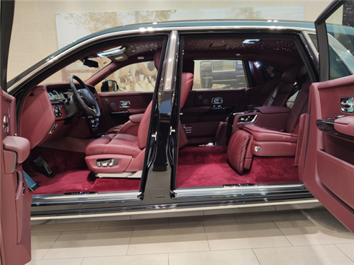 落座车内,即可感受幻影与其它所有车的不同。如同宫殿般宏伟的车身尺寸让幻影在严格遵循大型轿车最完美比例的同时,座椅和窗线的位置又明显高于普通汽车。这带来两个明显的好处,一是上下车的动作更自然,二是拥有普通轿车难以企及坐高望远。