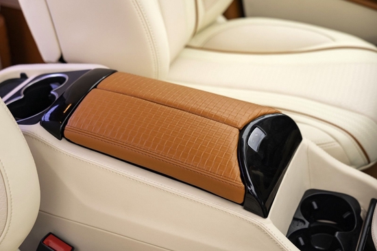 座椅方面,采用的是NAPPA打孔真皮定制航空座椅,头枕、要背、腿托多项座椅电动调节,座椅通风、加热、按摩等功能齐全,还有超长的电动腿托、腰托、肩托,符合人体工程学,超级舒适。扶手处的液晶屏就可以控制座椅的各项功能,扶手下方设计无线充电装置,出门着急忘记带充电线,也不慌了。是不是很贴心呢。