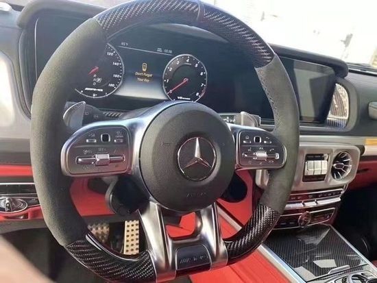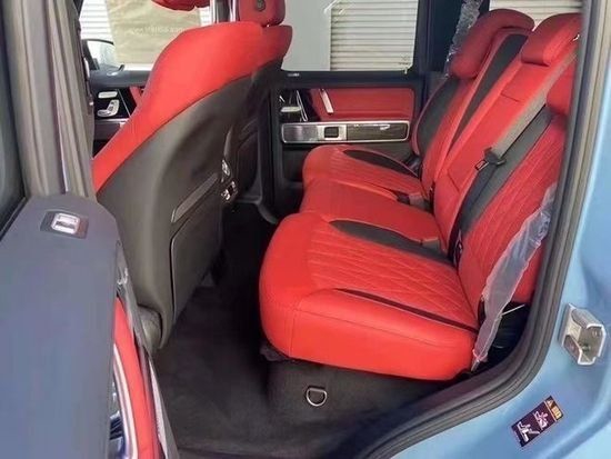 奔驰G63中控台配以大量哑光金属材质装饰,提升内饰质感,全新设 计的空调出风口造型精美,内饰最大亮点是全液晶仪表与中控屏组成的双12.3英寸超大连屏,其中液晶仪表可显示三组不同界面,而根据配置的不同,部分车型将配备传统机械式仪表。