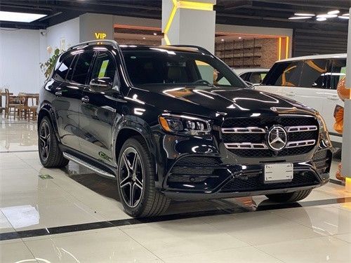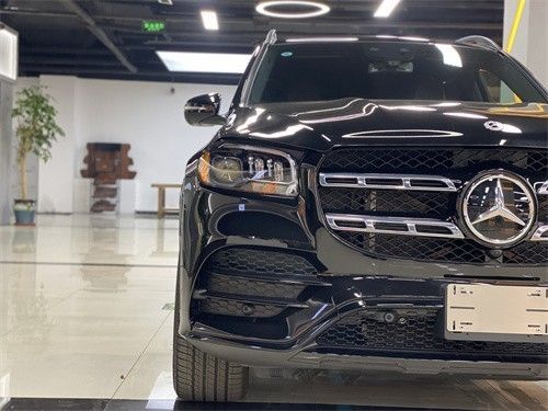 22款奔驰GLS450侧身线条简洁流畅,车顶配备了行李架,电吸门和铝制踏板,提高了上下车的便利性,大尺寸的轮毂透露出了运动风范。