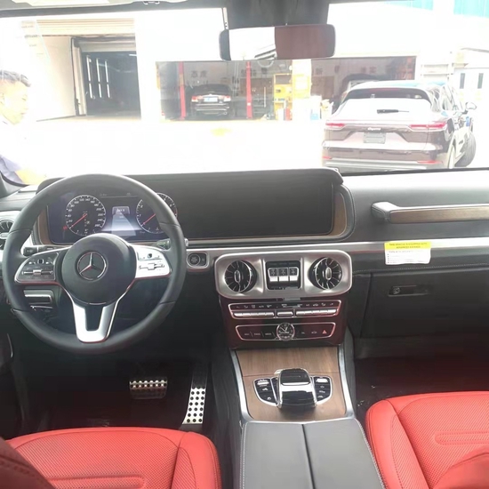22款奔驰G550采用了奔驰最新的双屏幕式设计,全液晶仪表盘和中控台屏幕都达到12.3英寸。同时内饰质感和工艺都有了很大的进步。奔驰G550新车在外观方面采用新的运动套件,前保险杠造型有所调整,格栅面积更大。