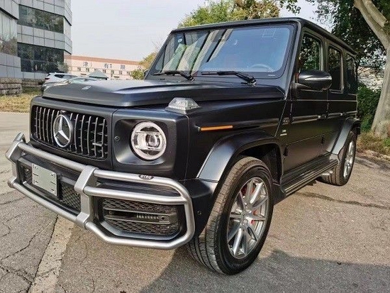 21款奔驰G63 (配置|询价)它硬朗的方盒子造型,没有多余的弧度、没有任何曲线,眼光所及满是平直锋利的线条,就连车顶上的导雨沟槽,也是沿着车顶周围一圈,分外焊接上去的金属槽,车门搭钮更是绝不虚心,硬挺挺地屹立在门缝之外,外凸的轮拱、造型如同 梯形的引擎盖。