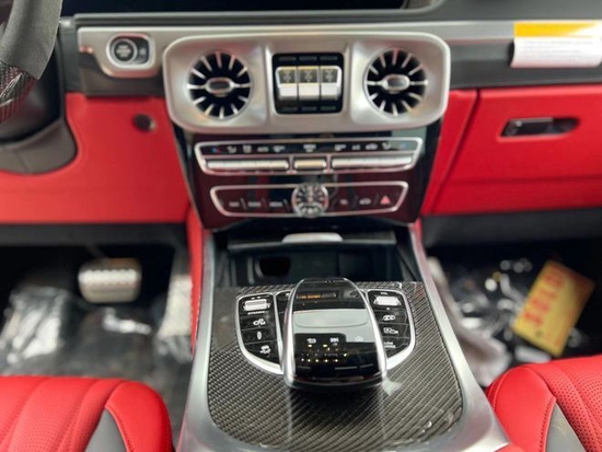 22款奔驰G63豪华精致的真皮包覆提供了足够的舒适性和支撑性,通风和加热功能让乘客免受高温和寒冷的煎熬。中控台多处均采用碳纤维材料覆盖,带彩色TFT显示屏的AMG仪表盘、AMG主菜单和单独的挡位显示器以及采用白色照明的AMG门槛。名贵的选材及精湛的内装令人拍案叫绝。