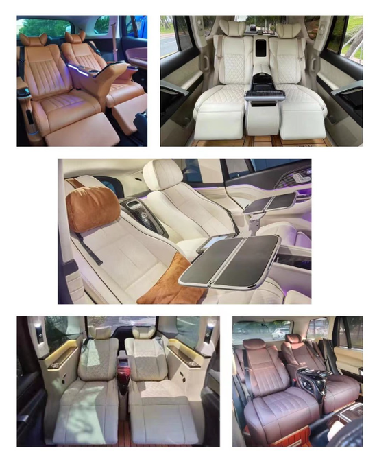 新款路虎发现5改装航空座椅后会提升舒适度,座椅内部海绵更加富有弹力,外层真皮更加柔软,适合长时间乘坐,并且具备按摩、加热、通风、手机充电、电动腿托、电动靠背角度调节,等强大的航空座椅级功能。SUV车型 座椅改装专业技术厂家成熟改装方案,无损改装更加合理。