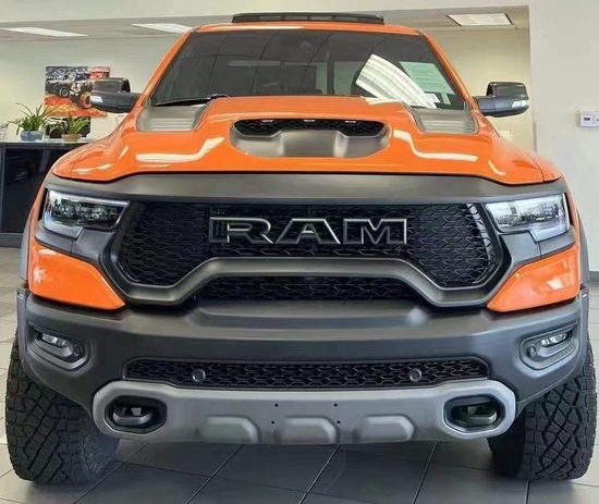 原装进口22款道奇公羊霸王龙6.2V8机械增压,710马力扭矩880,新款霸王龙家族高大威猛的造型设计,同时细节部分融入了更多高性能元素,包括经过黑化处理的前格栅,引擎盖两侧的黑色进气口,以及为了容纳巨大的机械增压器而设计的通风口等,新车还配备了视觉冲击力更强的黑色轮眉和外露式的拖车钩,看上去十分霸气。道奇公羊1500现车销售22款6.2V8 TRX霸王龙销售电话在下方。