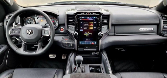 新车在内饰部分进一步强化了其高性能版本的形象,中控台和座椅随处可见的TRX标识便是最好的例证。)同时,作为道奇家族的旗舰车型,新车还配备了12英寸竖置中控屏幕,除了支持蓝牙、导航和车载Wi-Fi等常见功能,还支持Apple CarPlay和Android Auto手机映射。
