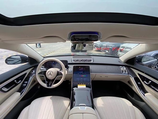 22款奔驰S500内饰设计就像一座移动的总统套房,相当的豪华。中控部分搭载了双屏设计,12.8英寸的中控大屏以及12.3英寸的悬浮式行车电脑屏,配上米色的内饰设计,颜值感很出众。此外,车内还使用了HUD投影显示以及高亮的钢琴烤漆面板,将科技感与时尚感结合得相当到位。