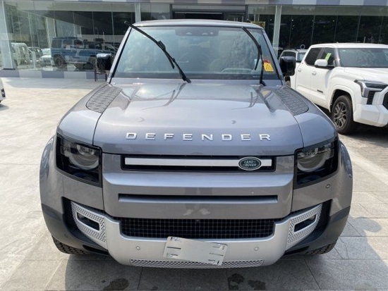 2022款路虎卫士的车头依旧使用了方方正正的设计元素,方形前灯组内有半圆形光源,前进气格栅的造型设计十分简洁并带有经典的“LAND ROVER”绿色logo,前机盖边缘的“DEFENDER”车型标志也得到了保留,前保险杠下部带有大面积的银色护板,整个前脸的层次感分明,也显得非常厚重。