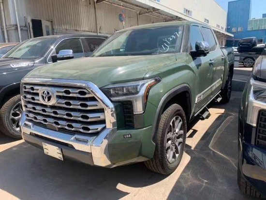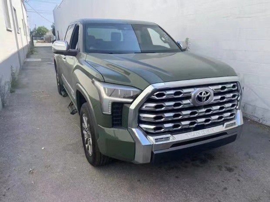 22款丰田坦途1794直接提供了有棱有角的车头前脸,大尺寸蜂窝状进气中网搭配镀铬边框处理,两侧泪痕造型LED矩阵大灯视觉效果并不输给福特猛禽 (配置|询价)。车身侧面看也有了方盒子外观效果,甚至还要熏黑车窗立柱营造出悬浮车顶。