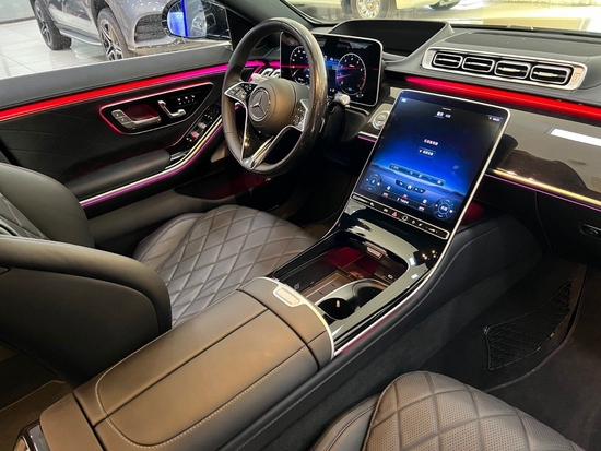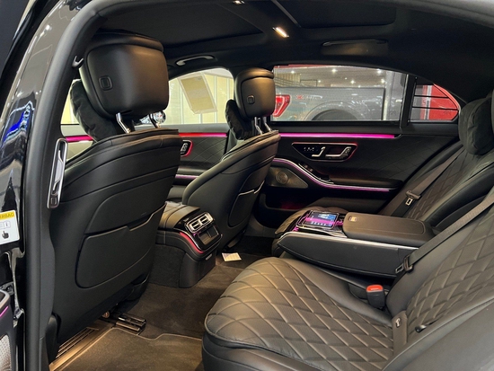 21款奔驰S580 黑/黑 配置:21轮,AMG运动包,流星雨大灯,3D仪表,4D抬显,主动氛围灯,菱形格座椅,后排加热通风按摩➕平板电脑