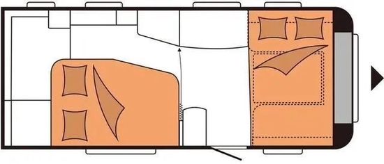 HOBBY 495的总长度(含牵引连接处)为7127mm,车身长度为5935mm,车外宽高为2300*2639mm,车内宽高为2172*1950mm,整体采用轻量化设计,总质量1500KG,可同时容纳4人起居需求。