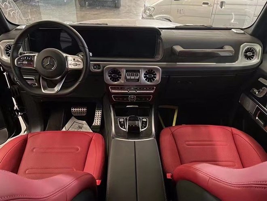 22款奔驰G550经典中奔驰G550采用了桃木覆盖件加以修饰,真皮座椅和中控台材料质成与外观呈现两个风格。内饰核心的仪表台整体上也保持了规矩大方的造型风格,与简洁刚毅的外观相统一。走进车内让人不禁忘记这是一辆外表强悍的SUV。原装新款奔驰G550多功能的方向盘设计、全新的中控台造型,以及带有320公里/小时记速器的仪表盘等等。