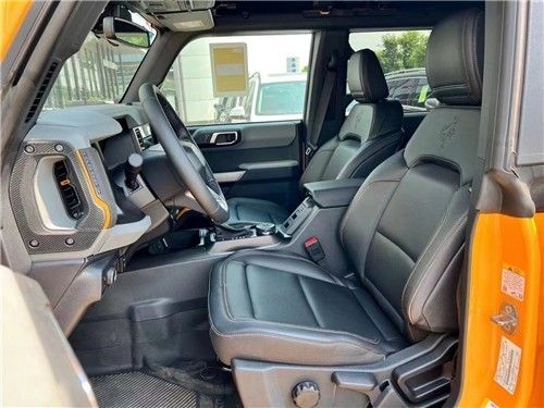 22款福特烈马Bronco车内采用硬朗的设计风格,中控台设计主次分明且有层次感,用料也厚实,多功能方向盘造型运动,中控屏幕采用内嵌式的设计增添了车内的时尚感,按键布局合理,档把设计精致,座椅宽大厚实,空间宽敞,实用性强。