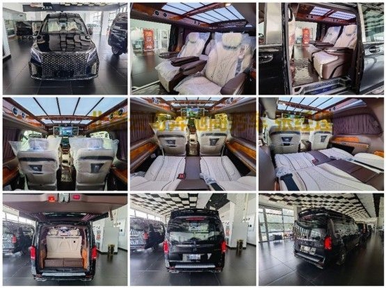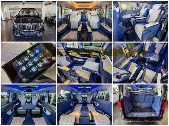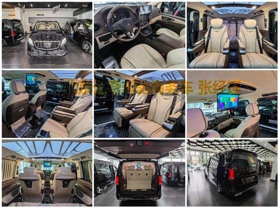 进口奔驰V250改装商务车配置大体分:进口奔驰V250平顶四座版,进口奔驰V250平顶七座版,进口奔驰V250高顶四座版,进口奔驰V250高顶七座版。1.V级格栅包围(选配:可升级迈巴赫格栅包围及银河格栅包围) 2。鹰眼式LED大灯 3.V级轮毂(选配:迈巴赫各款轮毂可选) 4。车身镀铬亮条 5。五门(三门电动) 6。折叠后视镜 7。九速空气悬挂底盘升降 8。古巴影木装饰 9。多功能方向盘 10。智能语音 11.V级中控台包覆 12。门板包覆 13。车载双向冰箱 14。外接电源接口 15。定制版铝合金脚踏。文章尾部有车辆咨询电话同微信。