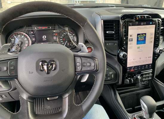 2022款道奇霸王龙在内饰部分进一步强化了其高性能版本的形象,中控台和座椅随处可见的TRX标识便是最好的例证。管经理15045922255 同时,作为道奇家族的旗舰车型,新车还配备了12英寸竖置中控屏幕,除了支持蓝牙、导航和车载Wi-Fi等常见功能,还支持Apple CarPlay和Android Auto手机映射。