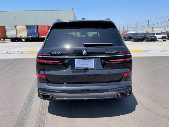 2023款宝马X7的尾部造型比较立体,并且尾部的层次感突出,车顶集成高位刹车灯的设计,新车还将会配备鲨鱼鳍天线设计,尾灯组内部条纹式的分割灯带照明后辨识度更高,后保险杠依旧选用银色的镀铬来进行一定的装饰,双边单出的排气管设计使整个尾部充满运动气息。
