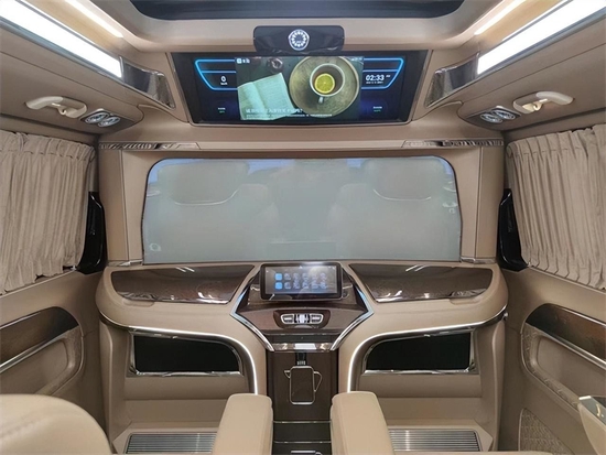 后舱配有两张独立调节的电动航空座椅,人体工学设计,包裹性极强,触摸屏控制,8项姿态调节让你坐躺都舒服,还有通风、加热、按摩、旋转功能。扶手上还有无线充电和有线充电功能,解除你的手机续航焦虑,内置新风系统让商务洽谈、接待更有层次感。全隔断格局的商务车大家都普遍觉得适合商务,但实际上,家庭用车的车主使用起来也是“得心应手”。内置新风系统商务洽谈接待锦上添花,顶灯造型部分,专业权威的设计团队打造而来,独家开模研发,双侧墙CNC雕刻开模。 内饰颜色还可单独定制,配合柏林之声的超高品质音响,也会带来一种极致的影音享受。