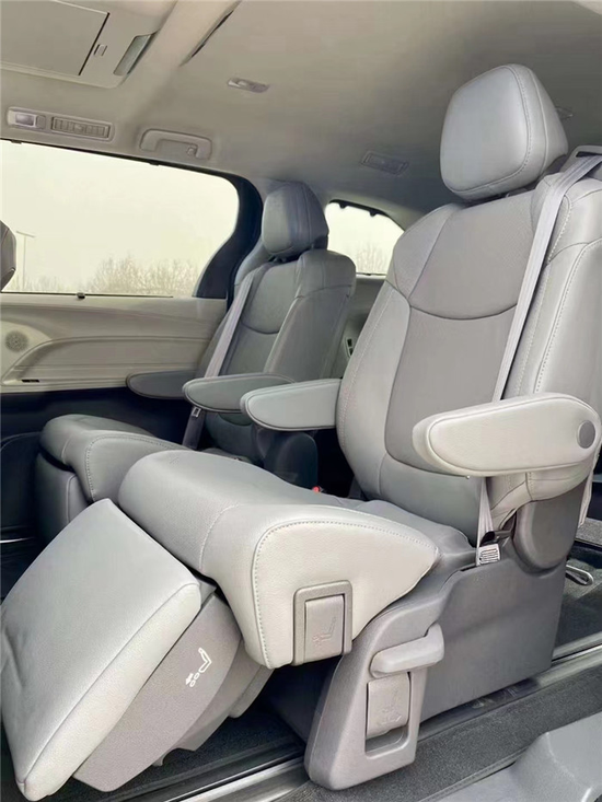 这款车是7座的布局,采用真皮包裹的座椅,打理起来很方便,第二排是独立座椅,椅背角度可调,带腿托,而且还自带头枕,乘坐舒适度非常好,作为家庭用车,空间表现也是相当不错的,而且整个后排空间的布局也是多变的,第三排座椅还可以放倒折叠,后备箱的空间也绝对够大够宽敞。