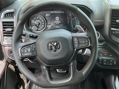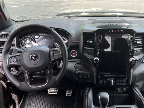 外观方面,新车传承了道奇Ram家族高大威猛的造型设计,同时细节部分融入了更多高性能元素,包括经过黑化处理的前格栅,引擎盖两侧的黑色进气口,以及为了容纳巨大的机械增压器而设计的通风口等等。此外,新车还配备了视觉冲击力更强的黑色轮眉和外露式的拖车钩,看上去十分霸气。