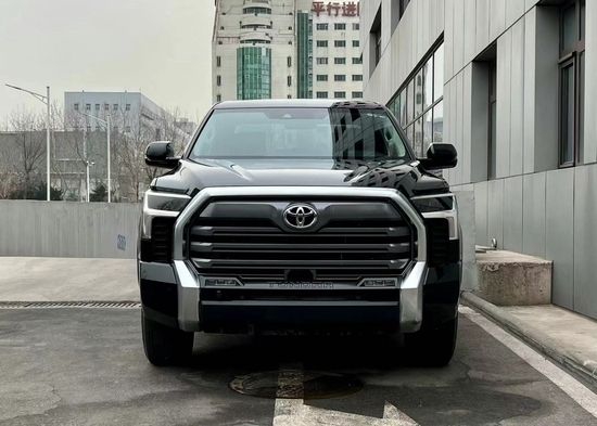 2022款丰田坦途采用了全新的设计风格,最具辨识度的莫过于前脸这块非常大的进气中网设计,通过亚光银的饰条搭配黑色蜂窝网状的造型使得视觉上整个中网的面积似乎从车标一直拉通到前保险杠的位置上,第一感觉无疑是非常野性的。