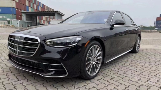 2022款美版奔驰S580,新车定位大型轿车。作为换代车型,全新奔驰S级 (配置|询价)的外观变化可谓脱胎换骨,黑色车漆涂装让它看起来非常亮眼,低矮扁平的车头造型非常有气势,标志性的“盾牌”式格栅辨识度极高,内部采用镀铬横幅条设计,大灯组造型很有科技感,灯腔内部构造复杂,LED日间行车灯点后极具辨识度,前包围菱角分明的设计,让它整体看起来多了几分运动气息。新车侧面,车顶线条经过B柱之后开始微微下滑,再辅以上扬腰线的设计,运动氛围营造得比较到位,让人印象深刻,同时大尺寸轮毂视觉效果颇为合张,话当的增添了该车年轻化色彩。车尾部分,新车采用了颇具年轻化风格的设计,尾灯内部结构设计精致,点亮时的效果非常出色,排气采用双边共两出布局,增强了车尾的运动感。