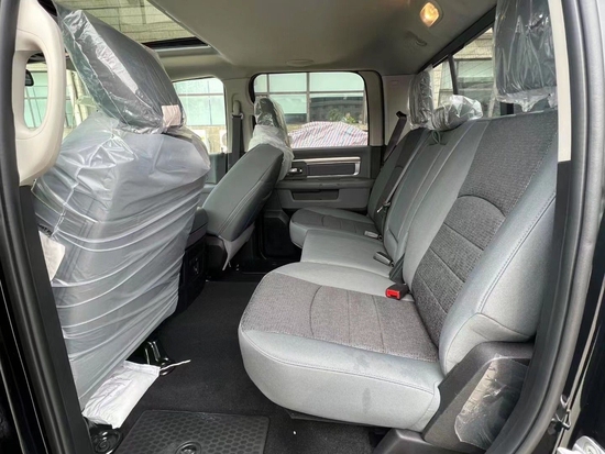 款 道奇公羊黑曜经典版 国六排放 49.8万 配置:5.7L V8 HEMI发动机 暗夜金属黑色外观 20寸熏黑轮毂 电动天窗 阿尔派音响 8.4寸导航屏 倒影 电眼 拖钩 绒布座椅 座椅加热 方向盘加热 感应雨刷 遥控启动 电动折叠后视镜 多功能方向盘 脚踏等