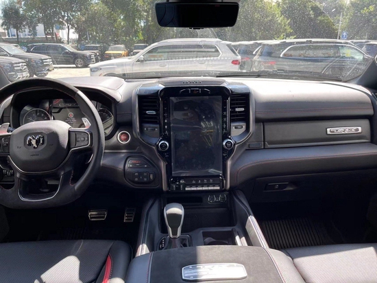 内饰部分进一步强化了其高性能版本的形象,中控台和座椅随处可见的TRX标识便是最好的例证。同时,作为道奇家族的旗舰车型,新车还配备了12英寸竖置中控屏幕,除了支持蓝牙、导航和车载Wi-Fi等常见功能,还支持Apple CarPlay和Android Auto手机映射。