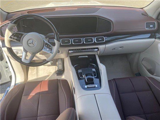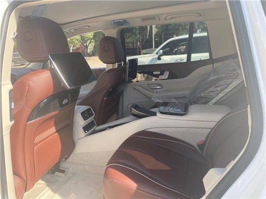 迈巴赫GLS600后排带有全景天窗、独立的多媒体娱乐系统、独立分区空调,车内香氛装置,可选车载冰箱、后排小桌板。整车都是夹层玻璃,搭配整车降噪组件隔音非常好,车内带64色氛围灯,26喇叭的柏林之声音响系统。