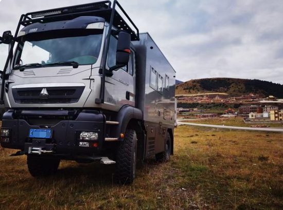 中国重汽汕德卡越野房车两驱四驱优惠价新重汽曼恩4×4重型越野房车基于重汽豪沃TX 4×4底盘打造,车身尺寸为5995×2550×3600(mm),轴距3600mm,整备质量12200kg,最大总质量13000kg,油箱容积为400L,可轻松续航1800公里;车身采用德国曼TGA柔性车架,箱体为热断桥硬化铝骨架六层加强保温结构,厚度为60mm,耐零下30度低温。越野专用方舱造型,三点悬浮设计,保证车厢稳定性的同时也防止意外变形,地板及家具异响,极大延长箱体使用寿命。底盘方面,前后悬挂采用前后专用板簧+液压筒式减震器的组合形式,其作用可过滤行驶途中的颠簸感也保证了舒适性;三把差速锁也让它对于任何路况都可从容不迫的通过,提升了户外越野的生存性。轮胎规格为425/65 R22.5。